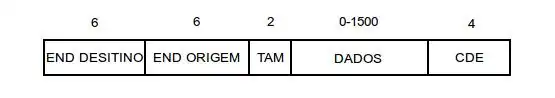 A Imagem abaixo apresenta uma versão simplificada do quadro utilizado em redes locais Ethernet, conhecido como quadro Ethernet. O primeiro endereço identifica o destinatário da mensagem, ou seja, o receptor. O segundo endereço identifica o remetente, ou seja, o transmissor. Cada endereço é formado por seis bytes, permitindo teoricamente 2⁴⁸ endereços. Por exemplo, o número 00-0C-6E-3C-D1-6D representa um endereço Ethernet no formato hexadecimal.[3]