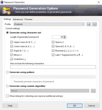 Os gerenciadores de senha muitas vezes oferecem a opção para gerar automaticamente uma senha, que ajuda a evitar usar a mesma chave para acesso a recursos diferentes, uma prática muito pouco recomendada mas difundida, especialmente para acessar páginas da web que exigem que o usuário se registre. Também, se o usuário optar por escolher sua própria senha, esses programas tendem a indicar o nível da robustez da palavra escolhida. É obviamente essencial que a senha mestra seja complexa o suficiente para torná-la difícil de quebrar. Se alguém tem palpite sobre a senha mestra e acesso a bancos de dados do programa, por exemplo através de um ataque de dicionário, ele poderia automaticamente ganhar acesso a todas as nossas chaves.