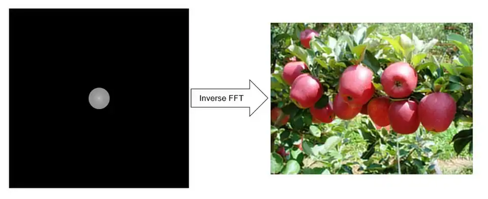 Além de podermos fazer essa transformação do domínio do espaço para o domínio da frequência e do domínio da frequência para o domínio do espaço, podemos ainda aplicar filtros, tais como, passa alta, passa baixa e passa faixa, como demonstrado a seguir: