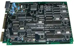 Duas CPUs Hitachi 68HC000 sendo usadas em uma placa de circuito impresso (PCB) de jogo de fliperama