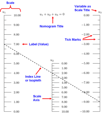 O nomograma traduz e resolve a fórmula ou equação entre as variáveis.[1]