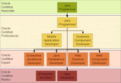 Alguns níveis de certificação tem base nos anteriores; por exemplo, é necessária uma certificação Associate para Professional, enquanto uma certificação Professional é necessária para Master. A certificação de Perito e Especialista não possui nenhuma certificação de pré-requisito como a Associado. A Oracle introduziu recentemente as certificações Junior Associate (por exemplo, o exame "Java Foundations Junior Associate 1Z0-811") voltado para estudantes de escolas e faculdades.