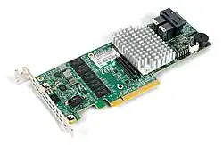 | SFF-8482[26][27] | interno | 29 | 2 | Esse formato foi projetado para compatibilidade com SATA, mas pode acionar um dispositivo SAS. Um controlador SAS pode controlar unidades SATA, mas um controlador SATA não pode controlar unidades SAS. A conexão mais comum[28] para drives SAS que se conectam a backplanes em servidores, ou seja, PowerEdge[29] e ProLiant[30] |