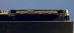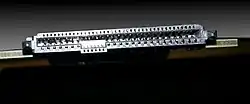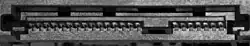 ![]() Conector Serial Attached SCSI (em cima), Conector SAS de um disco rígido (embaixo) | |