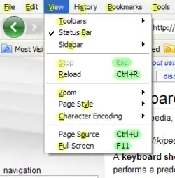 Na maioria das interfaces gráficas, as teclas de atalho são indicadas ao lado de cada opção de menu ou no próprio texto da opção. Nesta última hipótese, a tecla de atalho é indicada por uma letra sublinhada do texto da opção do menu, indicando que a tecla de atalho é formada pela tecla Alt seguida da tecla associada à letra sublinhada.
