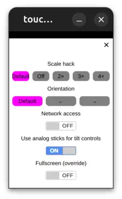![]() Captura de tela do touchHLE na tela de configurações | |