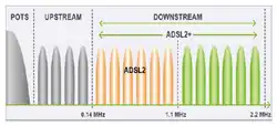 A ADSL2+ atua em uma frequência de 2 MHz (contra o 1 MHz do ADSL atual) em linhas telefônicas.