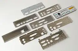 O ATX permitiu que cada fabricante de placa-mãe colocasse essas portas em uma área retangular na parte traseira do sistema com um arranjo que eles próprios pudessem definir, embora vários padrões gerais, dependendo de quais portas a placa-mãe oferece, tenham sido seguidos pela maioria dos fabricantes. As caixas geralmente são equipadas com um painel de encaixe, também conhecido como placa de E/S ou blindagem de E/S, em um dos arranjos comuns. Se necessário, as placas de E/S podem ser substituídas de acordo com a placa-mãe que está sendo instalada; as placas de E/S geralmente são incluídas em placas-mãe não projetadas para um computador específico. O computador funcionará corretamente sem uma placa instalada, embora haja lacunas abertas no gabinete que podem comprometer a triagem EMI/RFI e permitir a entrada de sujeira e corpos estranhos aleatórios. Foram feitos painéis que permitiram encaixar uma placa-mãe AT em um gabinete ATX. Algumas placas-mãe ATX vêm com uma placa de E/S integrada.
