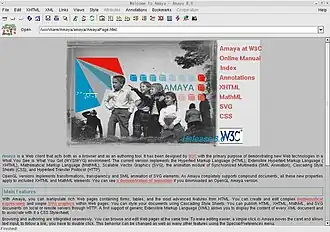 Originalmente projetado como um editor de texto estruturado (anteriormente ao SGML) e depois como um editor HTML e CSS, foi expandido posteriormente para ser compatível com linguagens XML como XHTML, MathML e SVG. Amaya exibe formatos de imagem abertos como PNG e SNG, assim como um subconjunto de animações SVG. É muito usado atualmente como uma plataforma de testes para novas tecnologias da web que ainda não são suportadas nos principais navegadores. No entanto, apesar de desenvolvido pelo W3C, o navegador possui um suporte a CSS incompleto, como pode ser conferido nesta imagem. Além disso segundo análise da versão 10.1-pre5, de 2008, o programa apresentou problemas de instabilidade, travando com frequência.[2]