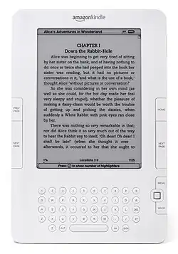 Kindle é um leitor de livros digitais desenvolvido pela subsidiária da Amazon, a Lab126, que permite aos usuários comprar, baixar, pesquisar e, principalmente, ler livros digitais, jornais, revistas, e outras mídias digitais via rede sem fio.[1] O aparelho, que está na sua décima segunda geração, tinha começado com apenas um produto e agora possui vários aparelhos — a maioria se utilizando de um display para ler papel eletrônico. Atualmente, a "família" Kindle também possui o Kindle Fire, um tablet, que também funciona como leitor de livros digitais, mas com um display colorido.