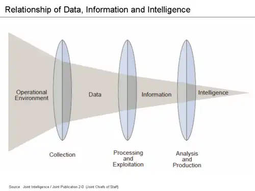 As fases do ciclo de inteligência usadas para converter informações brutas em inteligência ou conhecimento acionável são conceitualmente semelhantes às fases da análise de dados