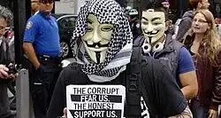 Diversos membros do Anonymous demonstraram apoio ao movimento Occupy Wall Street, atendendo aos protestos locais e criando blogs que davam cobertura ao movimento.[93]