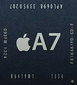 O Apple A7 é um chip de 64-bit projetado pela empresa Apple Inc. Sua primeira aparição ocorreu no anúncio feito no dia 10 de setembro de 2013 do iPhone 5s. A empresa afirma que o chipset é o primeiro chip baseado na arquitetura ARM com suporte 64-bits. Também afirmou que é duas vezes mais rápido e tem duas vezes mais poder de processamento gráfico comparado com o seu predecessor, o Apple A6.[2]