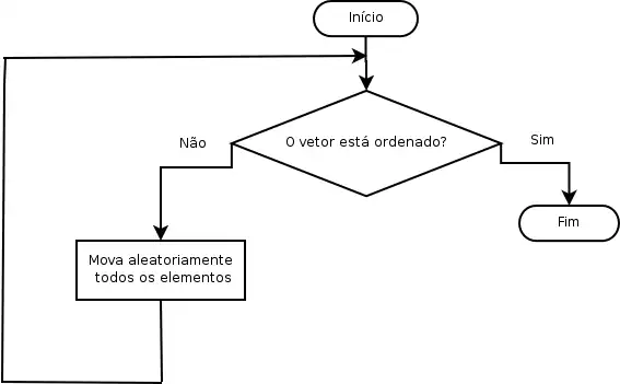 Para se ordenar um baralho usando-se este Algoritmo, seria necessário jogar as cartas ao ar, juntá-las aleatoriamente, e então verificar se as mesmas estão ordenadas.