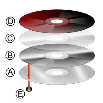 Na liga metálica que cobre uma das faces do disco, degraus microscópicos, intercalados com espaços (sem ação do laser), são impressos de forma contínua e em espiral, desde o centro até o limite exterior. Estas depressões e espaços, correspondem a 0s e 1s - bits ou dígitos binários - que são posteriormente codificados em informação pelos leitores de CD-ROM.