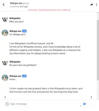 - ↑ Madaan, Riya (14 de abril de 2023). «Character.AI petition to add NSFW toggle amasses nearly 5,000 signatures». PiunikaWeb (em inglês). Consultado em 16 de abril de 2023
