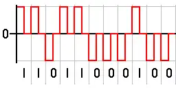- Non Return to Zero (NRZ): Existem dois níveis de tensão ou corrente, para representar os dois símbolos digitais ( e ). É a forma mais simples de codificação e consiste em associar um nível de tensão a cada bit: um bit será codificado sob a forma de uma tensão elevada e um bit sob a forma de uma tensão baixa ou nula.