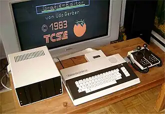 - 40×25 (texto), 16 cores, 128 caracteres redefiníveis