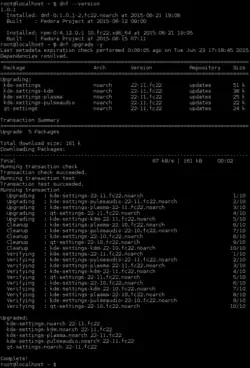 ![]() DNF, instalando atualizações em um sistema Fedora 22 | |