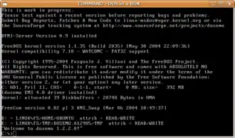 O DOSEMU é um utilitário que permite executar, num ambiente Linux, software que só é executável em MS-DOS ou Microsoft Windows até à versão 3.1. O DOSEMU - de que pode ser feito o download a partir de www.dosemu.org - traz consigo uma versão de DOS chamada FreeDOS que pode suprir as necessidades mais básicas ou resolver o problema de quem não tem uma versão do MS-DOS ou mesmo do DR-DOS. Existem várias formas de instalá-lo e configurá-lo. Aqui vamos propor-te uma solução simples e eficaz, que passa pela criação de um directório ~/dos - assim, no teu directório home - que vai “fingir ser” a unidade C:. Esta solução pode não funcionar com algumas distribuições como a Debian, mas funcionará com as mais comerciais. Vamos então aos passos necessários:
