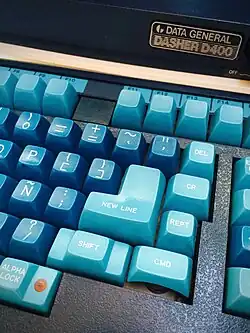 A Data General produzia uma linha completa de periféricos, às vezes rebadging de impressoras, por exemplo, mas a própria série de terminais com base em CRT e cópia impressa da Data General era de alta qualidade e apresentava um número generoso de teclas de função, cada uma com a capacidade de enviar códigos diferentes, com qualquer combinação de teclas de controle e shift, o que influenciou o design do WordPerfect.[21] O modelo 6053 Dasher 2 apresentava uma tela facilmente inclinável, mas usava muitos circuitos integrados; os modelos menores e mais leves D100, D200 e, por fim, o D210 o substituíram como terminal de usuário básico, enquanto os modelos gráficos, como o D460 (com compatibilidade ANSI X3.64), ocupavam o topo da gama. Existem emuladores de terminal para o D2/D3/D100/D200/D210 (e alguns recursos do D450/460), incluindo o programa Freeware 1993 DOS em D460.zip.
