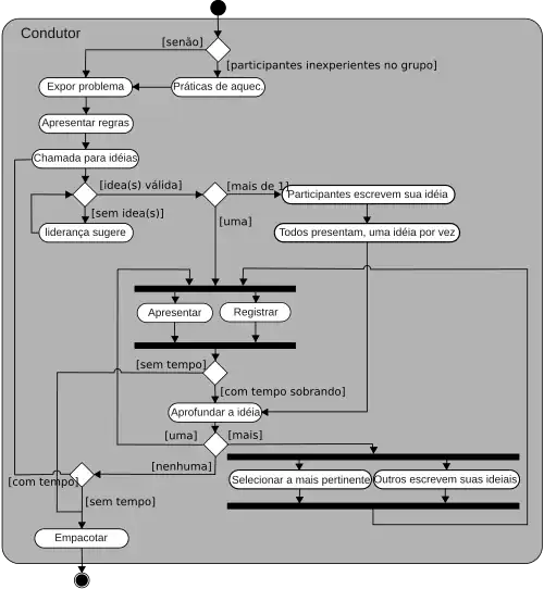 - Decisão: Dependendo de uma condição, mostra as diferentes transições.