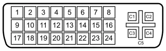 Pinos de um conector fêmea DVI (visão do plugue)