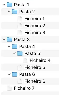 O nome pasta, apresentando uma analogia com os arquivadores utilizados em escritórios, e utilizadas na ERMA Mark 1 publicada em 1958,[6] bem como na Xerox Star, é usado nos ambientes de trabalho de quase todos os sistemas operativos modernos. As pastas são frequentemente representadas com ícones que se assemelham visualmente a pastas físicas.