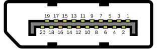 | Pinos | 20 pinos para conectores externos em desktops, notebooks, placas de vídeo, monitores, etc. e 30/20 pinos para conexões internas entre motores gráficos e painéis integrados. | ||