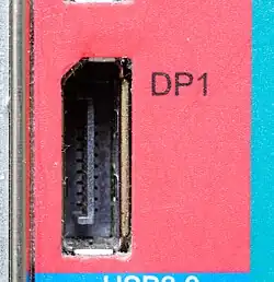 DisplayPort (DP) é uma interface de exibição digital desenvolvida por um consórcio de fabricantes de PCs e chips e padronizada pela Video Electronics Standards Association (VESA). É usado principalmente para conectar uma fonte de vídeo a um dispositivo de exibição, como um monitor de computador. Ele também pode transportar áudio, USB e outras formas de dados.[1]