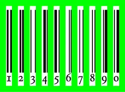 Código de barras EAN-13. Uma barra verde indica as barras pretas e espaços brancos que codificam um dígito.