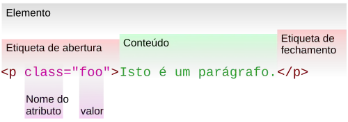 <p class="foo">Isto é um parágrafo</p>Há múltiplos tipos de elementos HTML: elementos vazios, elementos de texto, e elementos normais.