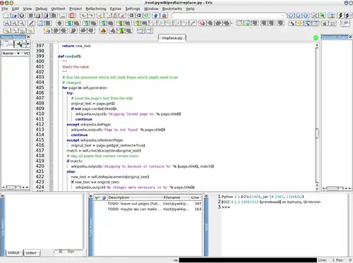 Eric Python IDE é um ambiente de desenvolvimento integrado multiplataforma para desenvolvimento na linguagem Python desenvolvido usando QScintilla, Qt e PyQT.
