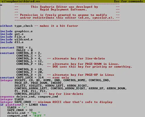 - Euphoria Editor (ED) - Um editor com suporte a realce de sintaxe[22]