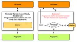 Os sistemas operacionais geralmente apresentam recursos de hardware para aplicativos por meio de abstrações de alto nível [abstração (ciência da computação)], como sistemas de arquivos (virtuais). A ideia por trás dos exokernels é forçar o mínimo possível de abstrações nos desenvolvedores de aplicativos, permitindo que eles tomem o maior número possível de decisões sobre abstrações de hardware.[2]