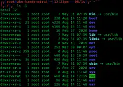 Captura de tela da hierarquia do sistema de arquivos no Arch Linux, em agosto de 2021
