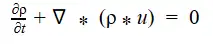 Ela pode ser escrita de diversas maneiras, tendo como base o que é a quantia a ser tratada. Quando relacionada à dinâmica de fluidos, ela apresenta o seguinte formato mostrado na imagem, no qual ρ é a densidade do fluido, t é o tempo, u é o vetor velocidade de fluxo e ∇ é o operador divergência.