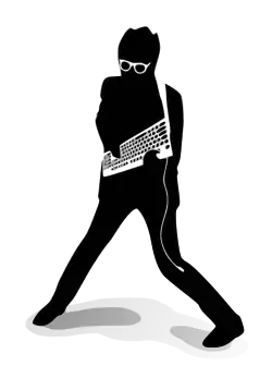 pose.svg - Elvis Costello look-a-like posing with keyboard.