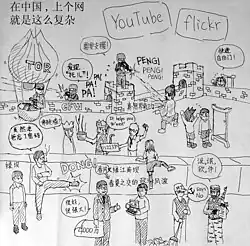 A internet na China chegou em 1994,[18] como consequência inevitável e ferramenta de apoio para uma "economia de mercado socialista". Com o aumento gradual do acesso à internet, ela se tornou uma plataforma comum de comunicação e meio para a troca de informações.