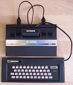 Foram disponibilizados periféricos para vários consoles de jogos para converter os dispositivos em um computador pessoal completo. Já no Atari 2600, um adaptador chamado Atari Graduate foi concluído em 1983, expandindo a máquina com um teclado e recursos de E/S para uso com dispositivos de armazenamento.[40] O Graduate nunca foi vendido, mas um adaptador semelhante de 1983 de um terceiro, chamado CompuMate, foi lançado. Um módulo de expansão chamado Adam para o ColecoVision foi lançado em 1983 e incluía um teclado e recursos de armazenamento (também estava disponível como um computador pessoal dedicado).[41] Um produto chamado Family Basic foi lançado para o Nintendo NES em 1984 com um objetivo semelhante.