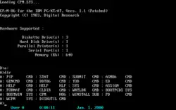 Os sistemas operacionais eram comuns em mainframes e minicomputadores, mas no espaço nascente dos computadores pessoais, havia pouca coisa disponível além de um monitor. Embora esse termo agora se refira mais comumente ao hardware de exibição, na época ele se referia a um pequeno programa específico para cada computador, capaz de iniciar outro software, fazer alguma depuração e talvez salvar o conteúdo da memória em locais específicos em um dispositivo de armazenamento. Gary Kildall desenvolveu o CP/M em 1974 como um sistema operacional para o Intellec e fundou sua empresa, a Digital Research, no mesmo ano. Originalmente, CP/M significava "Control Program/Monitor" (Programa de Controle/Monitor), mas depois se tornou "Control Program for Microcomputers" (Programa de Controle para Microcomputadores). Ele foi licenciado pela primeira vez para um pequeno fabricante chamado Gnat Computers em 1977. Naquele ano, o número de fornecedores de computadores estava aumentando e a demanda por um sistema operacional padronizado cresceu. O CP/M 2.0 foi desenvolvido em 1978. Em 1981, mais de 250.000 cópias haviam sido vendidas e o sistema operacional tinha uma grande biblioteca de softwares compatíveis escritos para ele.[36]