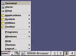 ![]() Screenshot do IceWM (tema IceDesert) | |