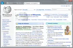 ![]() Internet Explorer 10 no Windows 7 exibindo a página inicial da Wikipédia. | |