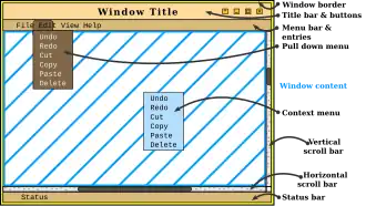 Cada programa de computador define a estrutura das janelas que o compõem, os widgets que serão inseridos em seu conteúdo. Entretanto, para janelas de aplicação/documento um esquema muito utilizado está representado na figura ao lado.