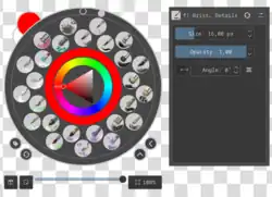 | 10 predefinições de pincel carregadas | Seletor de anel de cor | Zoom |