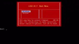 O LILO permite escolher um de dezesseis núcleos possíveis, cada um contendo opções específicas.