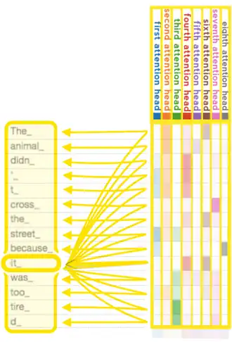 Para descobrir quais tokens são relevantes uns para os outros dentro do escopo da janela de contexto, o mecanismo de atenção calcula pesos "suaves" (soft weights) para cada token, mais precisamente para o seu embedding, usando múltiplas cabeças de atenção, cada uma com sua própria "relevância" para calcular seus próprios pesos suaves. Por exemplo, o modelo pequeno do GPT-2 (ou seja, com tamanho de 117 milhões de parâmetros) tinha doze cabeças de atenção e uma janela de contexto de apenas 1k tokens.[54] Em sua versão média, ele tem 345 milhões de parâmetros e contém 24 camadas, cada uma com 12 cabeças de atenção. Para o treinamento com gradiente descendente, foi utilizado um tamanho de lote (batch size) de 512.[41]