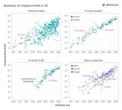 Uma infraestrutura substancial é necessária para o treinamento dos maiores modelos. A tendência em direção a modelos maiores é visível na lista de grandes modelos de linguagem. Por exemplo, o treinamento do GPT-2 (ou seja, um modelo de 1,5 bilhão de parâmetros) em 2019 custou US$ 50.000, enquanto o treinamento do PaLM (ou seja, um modelo de 540 bilhões de parâmetros) em 2022 custou US$ 8 milhões, e o do Megatron-Turing NLG 530B (em 2021) custou cerca de US$ 11 milhões. O qualificador "grande" na expressão "grande modelo de linguagem" é inerentemente vago, pois não há um limite definitivo para o número de parâmetros necessários para que seja classificado como "grande".
