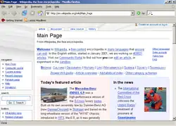 ![]() Mozilla Firefox 139 exibindo a página principal da Wikipédia no Windows 11 | |