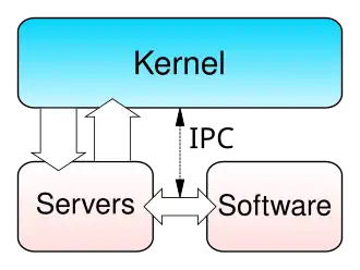 Um núcleo pode implementar estes recursos ele mesmo, ou depender de alguns processos que ele executa para fornecer estas facilidades a outros processos, no entanto neste caso ele deve oferecer algum modo do IPC permitir que processos acessem as facilidades fornecidas um pelo outro.